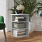 Deze bijzetkast heeft 3 schappen, die voldoende ruimte bieden om je spulletjes overzichtelijk en binnen handbereik te houden. Het blad biedt een stabiel oppervlak voor het plaatsen van drankjes, boeken en decoraties. Dit meubel is gemakkelijk schoon te maken met een vochtige doek.