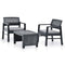 This lounge set is suitable for outdoor use thanks to its solid yet lightweight plastic material, which is durable, weather-resistant and easy to clean. The seat cushions, made of polyester, contribute to the comfort of the armchairs. The garden furniture set is easy to assemble.
