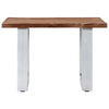 Het tafelblad is gemaakt van stevig, massief acaciahout. De unieke, U-vormige, gepoedercoat metalen poten dragen bij aan de industriële stijl en maken de tafel zeer stabiel. De rand van het hout, dat de natuurlijke vorm van de boom volgt, maakt de tafel nog mooier.